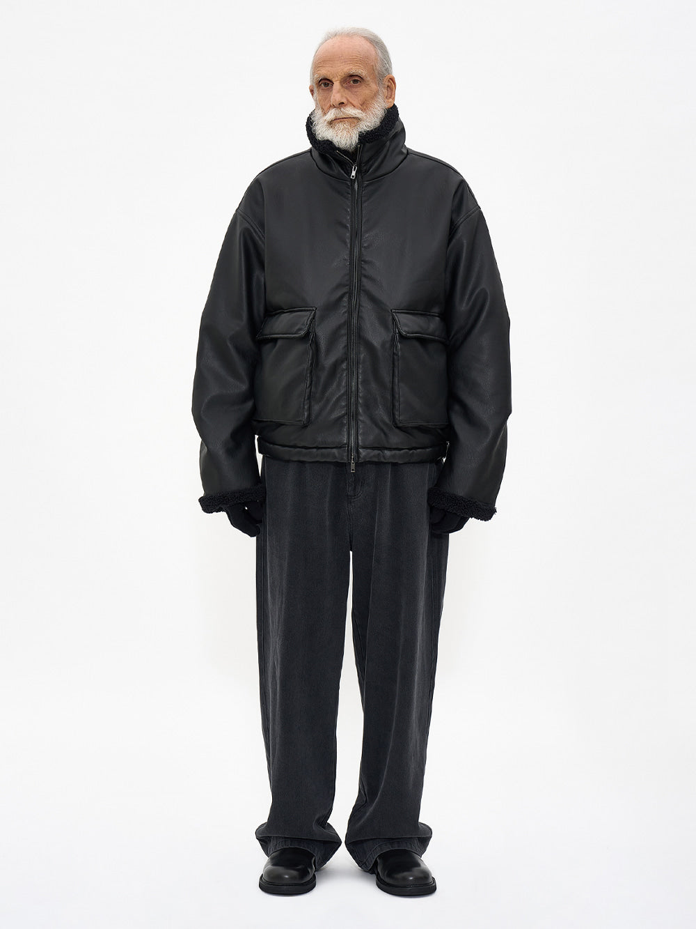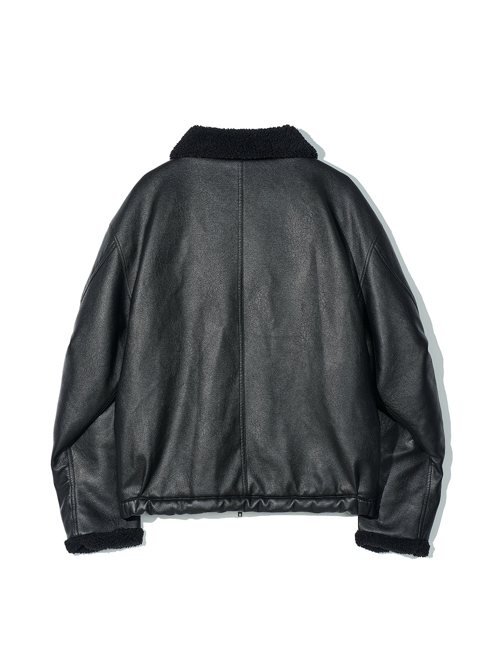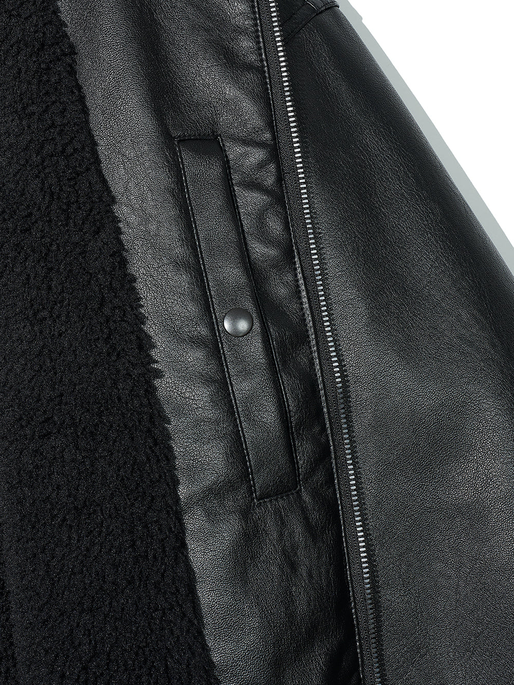 Partimento Leather Boa Fleece Mouton Jacket Black